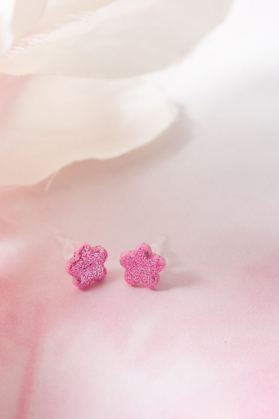 Ohrstecker Blume Rosa Glitzer