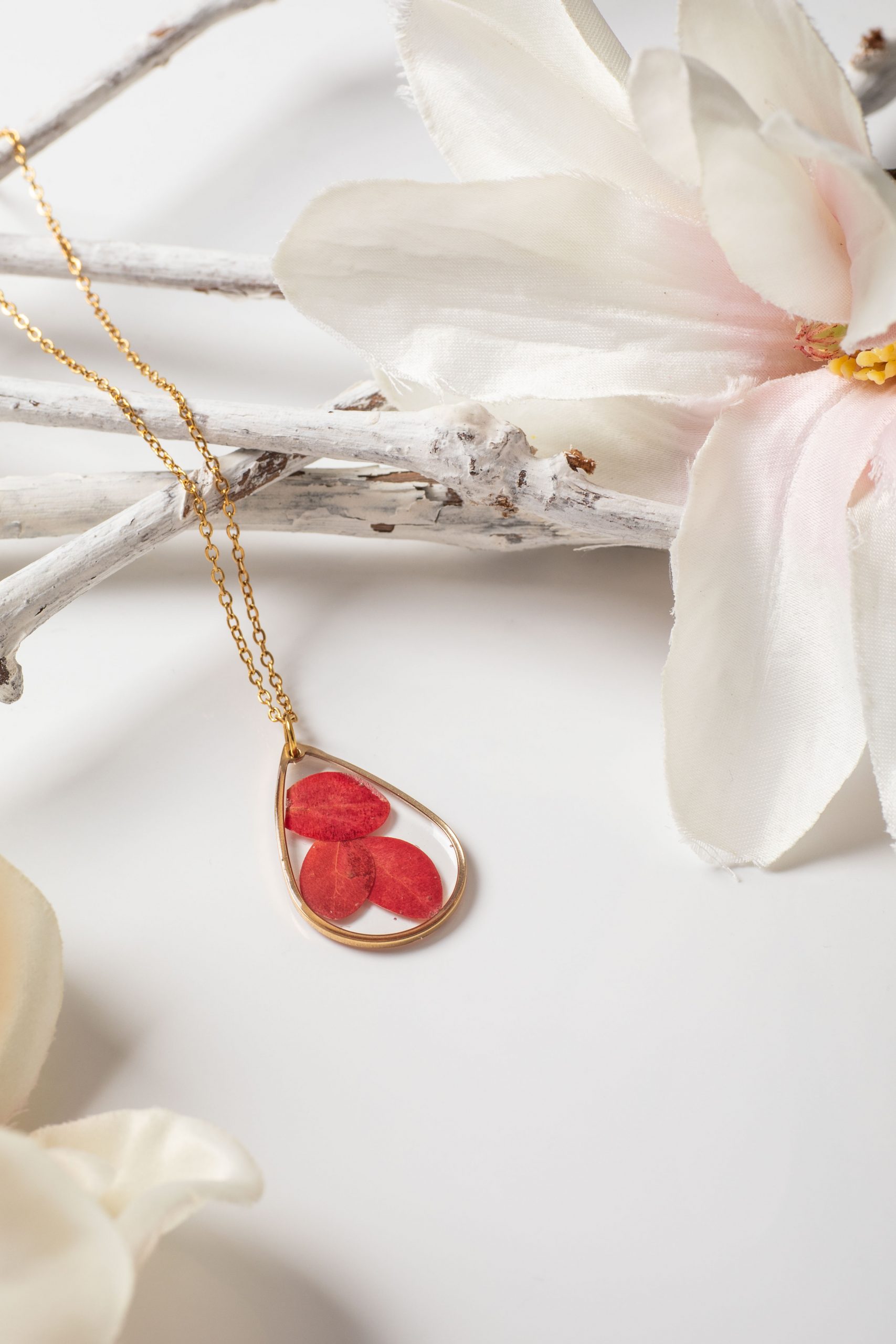 Anhänger Resin Heckenberberitze Tropfen gold Rot