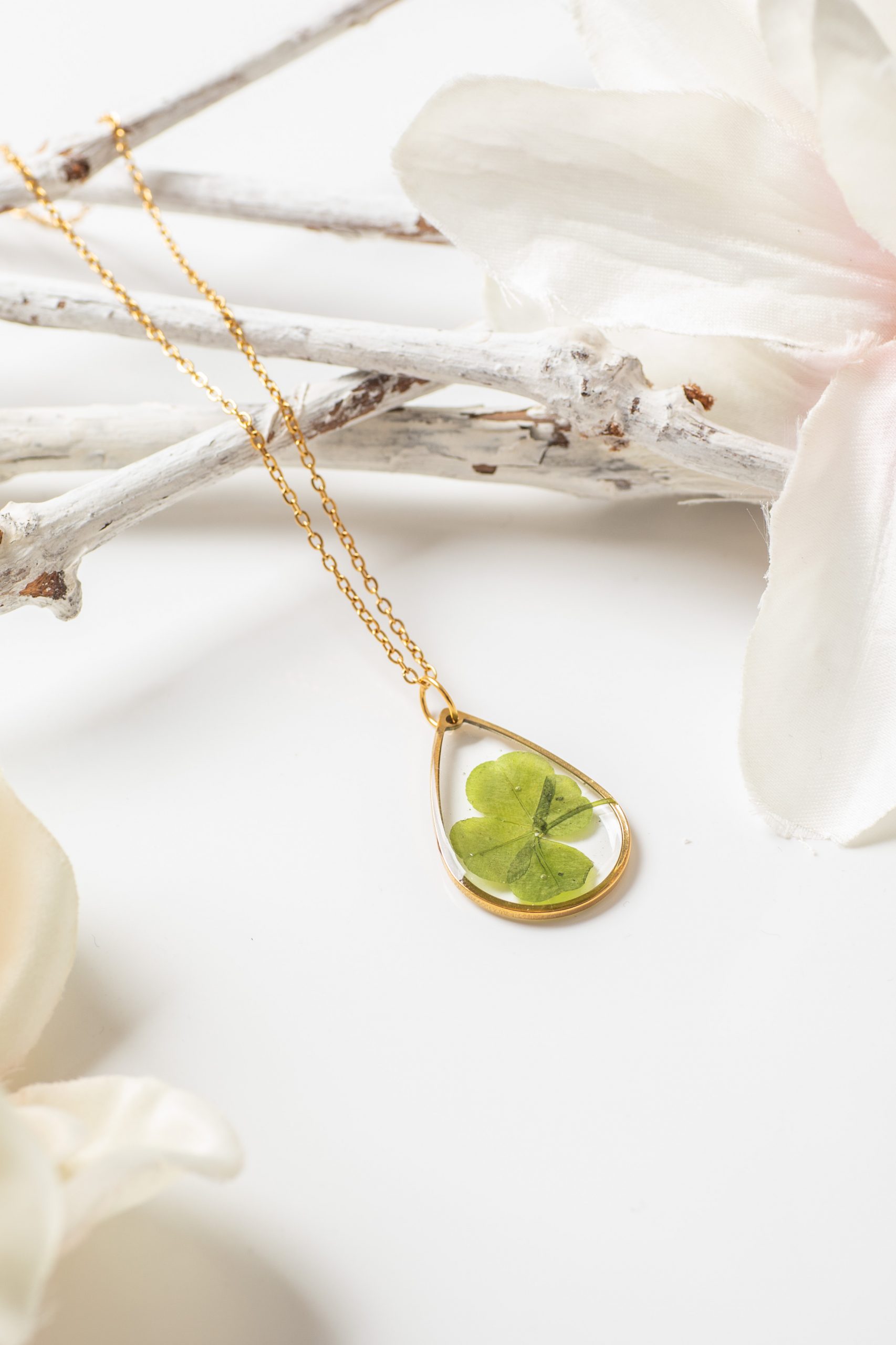 Anhänger Resin Kleeblatt Tropfen Gold 2