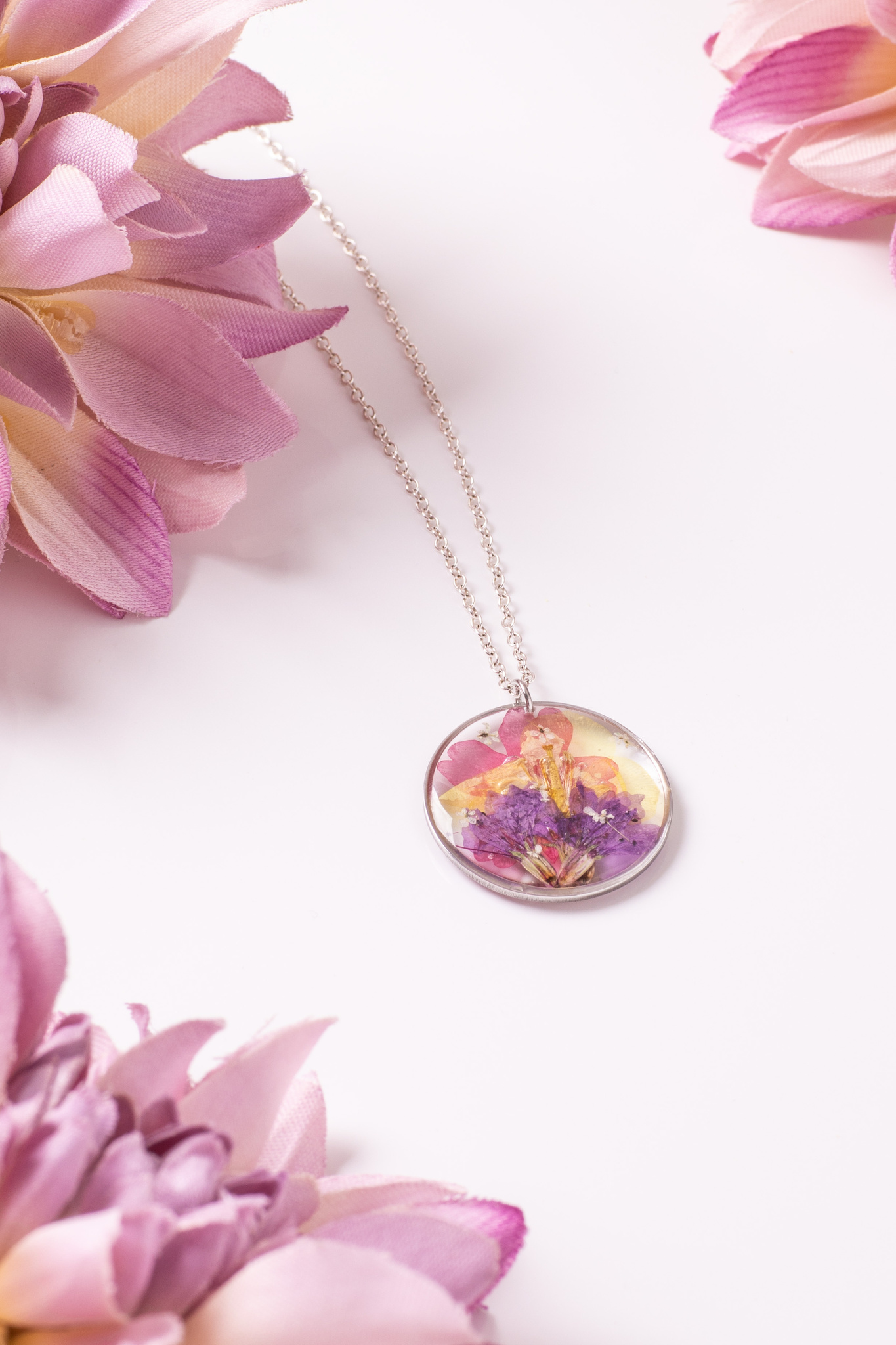 Anhänger Resin Rund Groß Silber Blutweiderich Flammenblume Brokkoli