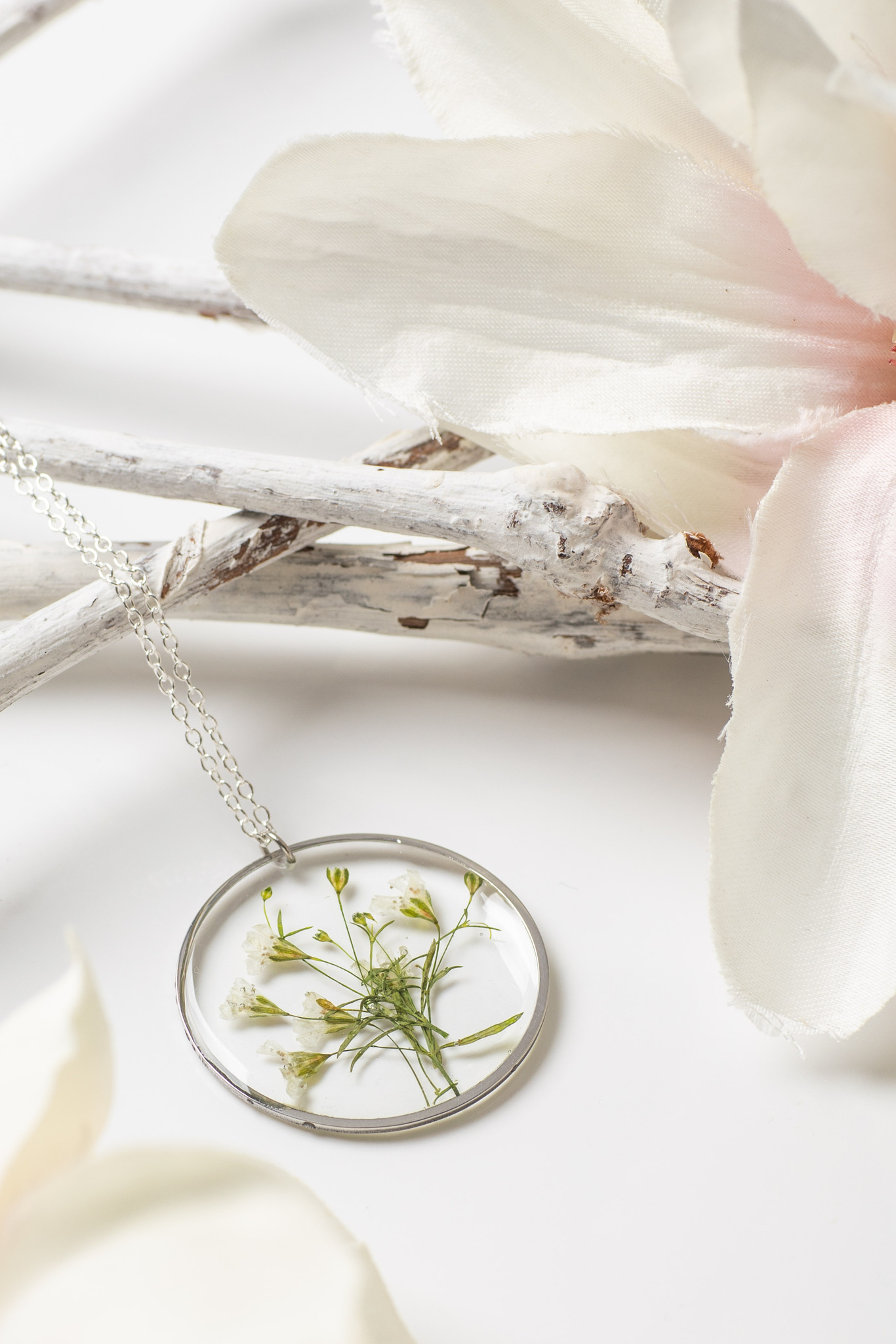 Anhänger Resin Schleierkraut Silber Weiß