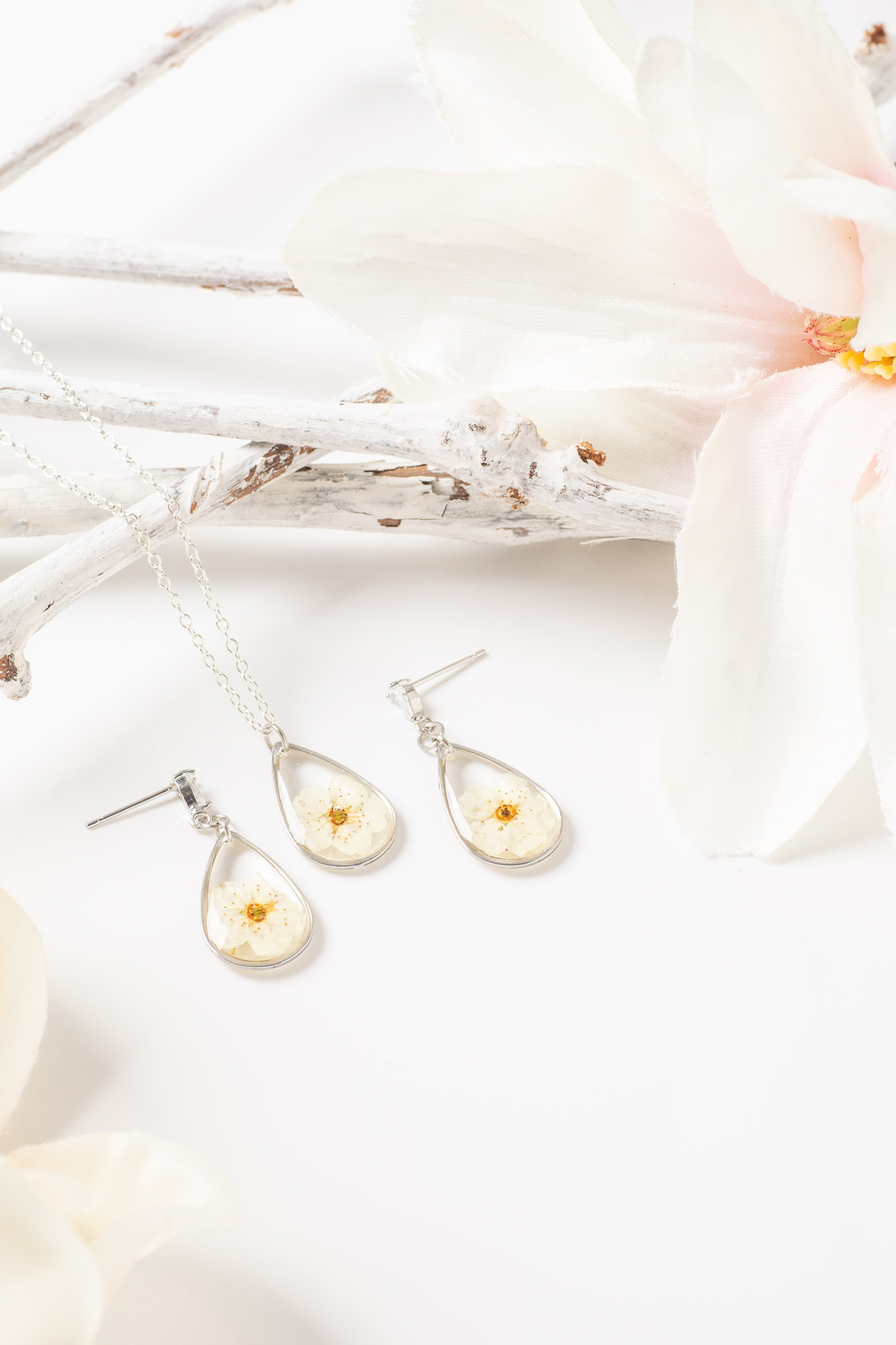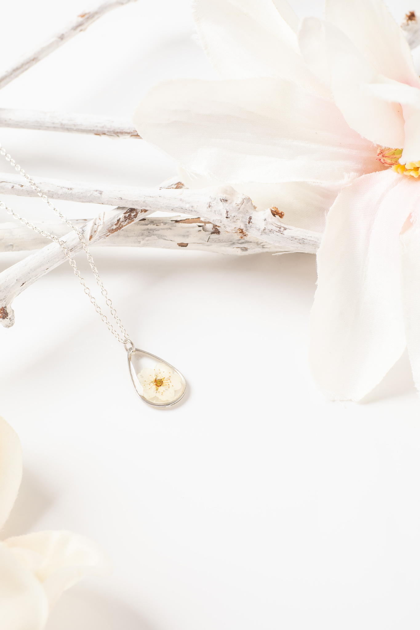 Anhänger Resin Spirea Tropfen Silber Weiß