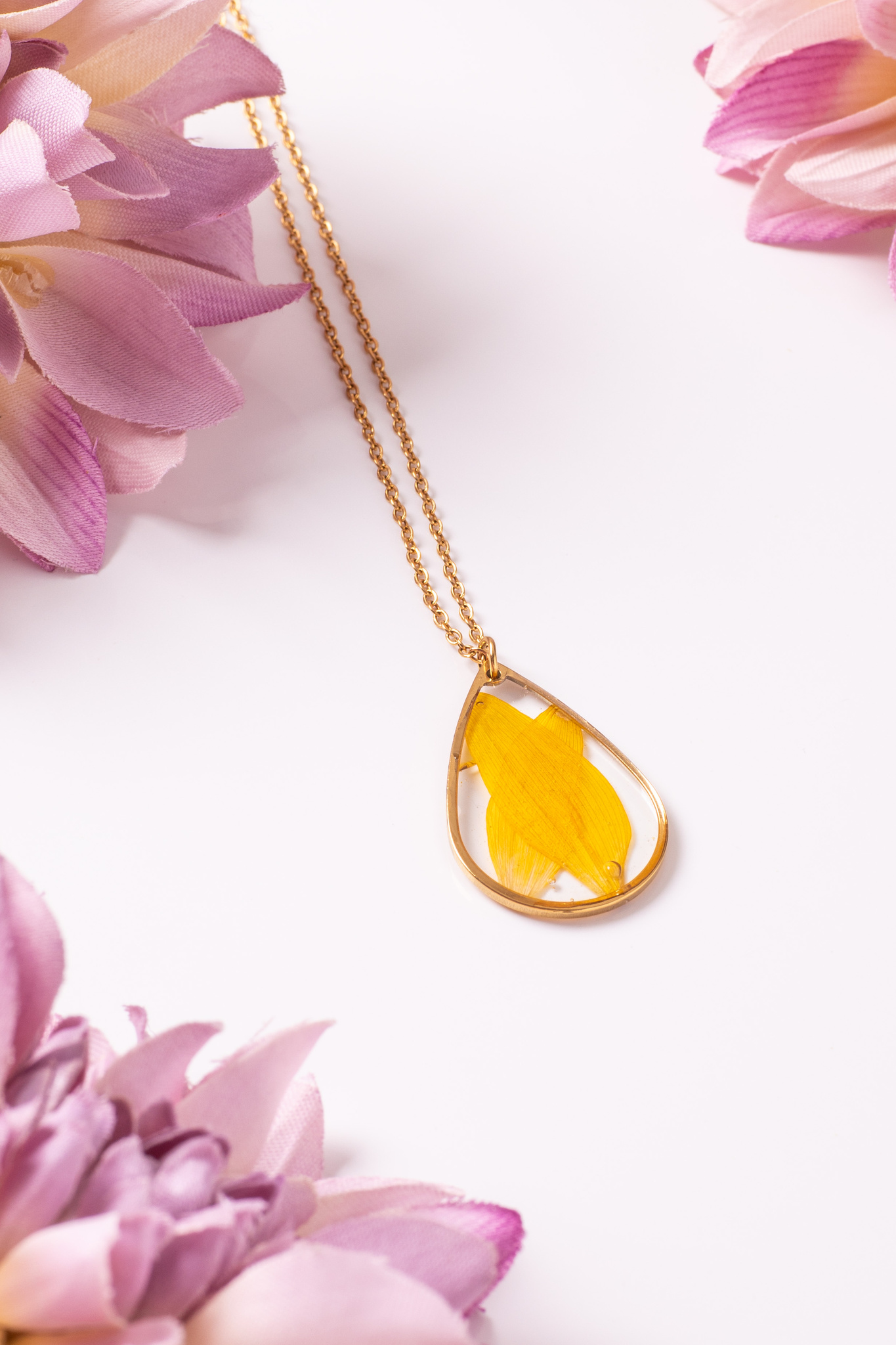 Anhänger Resin Tropfen Groß Gold Sonnenblume
