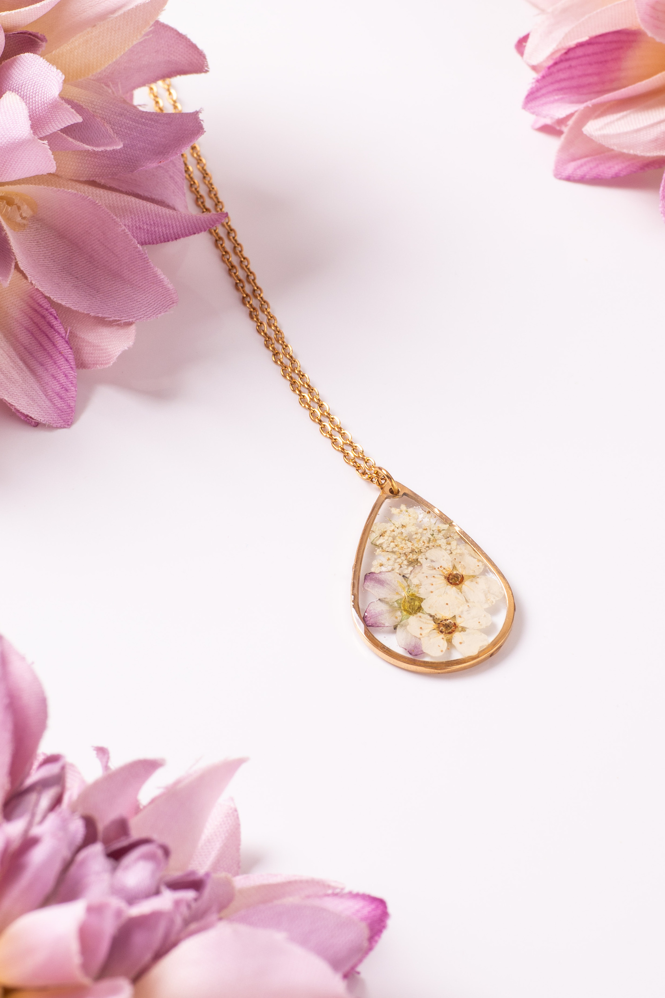 Anhänger Resin Tropfen Groß Gold Spirea Steinbrecher Wilde Möhre