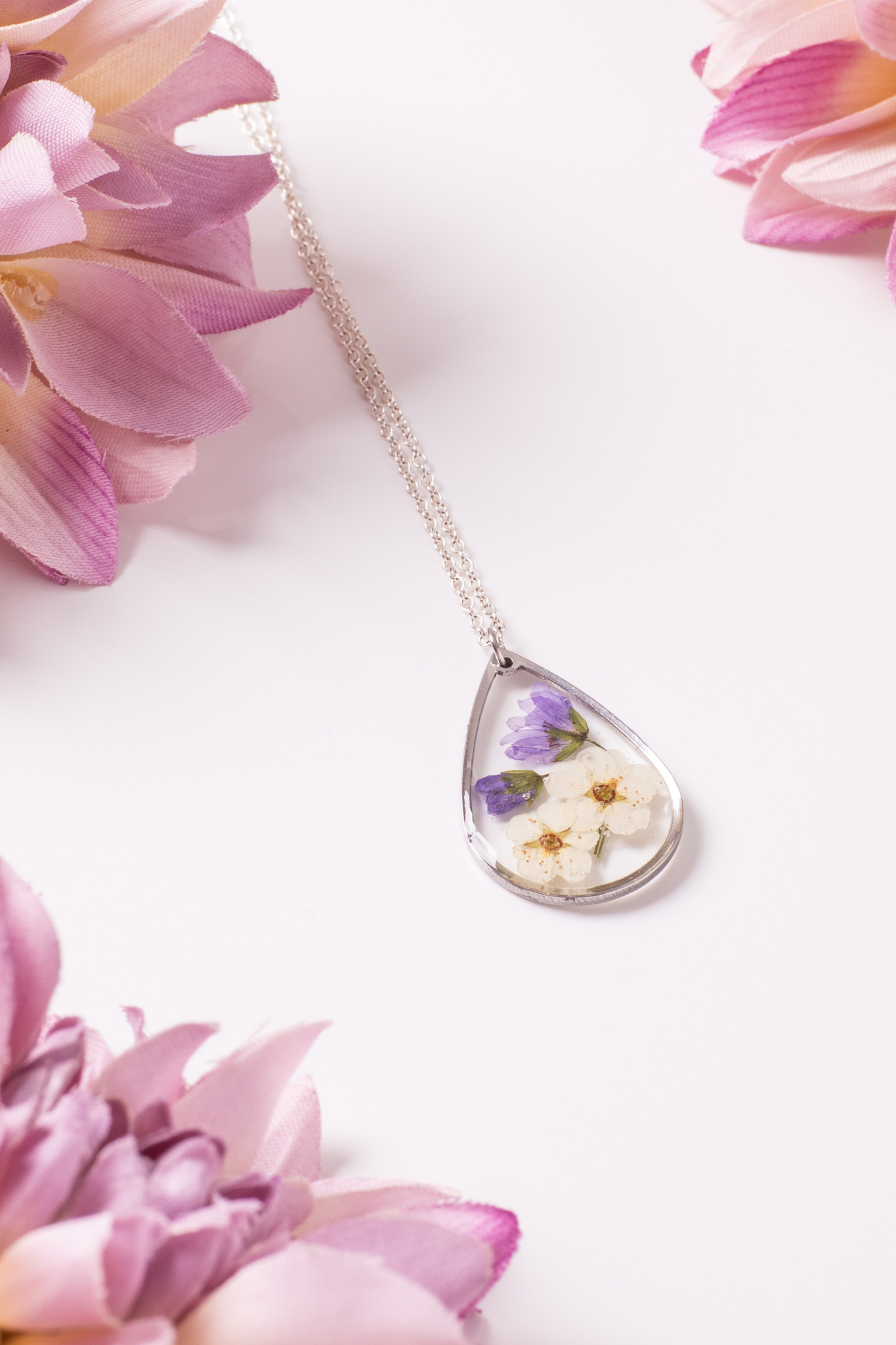 Anhänger Resin Tropfen Groß Silber Storchschnabel Spirea