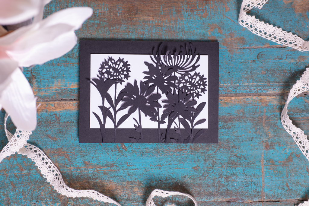 Grußkarte Blumen Wiese Grau Schwarz 2