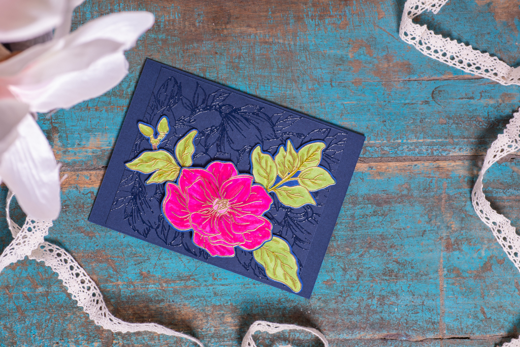 Schlagwörter: Muttertag Embossing Danke Blüte Schwarz Blau Gold Blume Pink Geburtstag