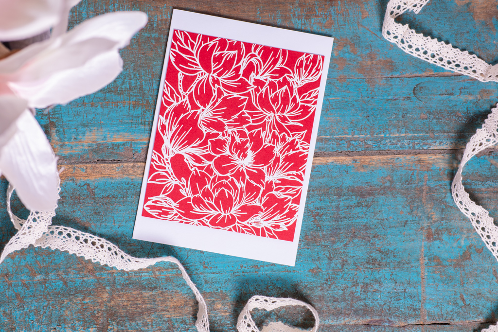 Schlagwörter: Danke Embossing Blüte Weiß Magnolie Blume Geburtstag Rot Muttertag