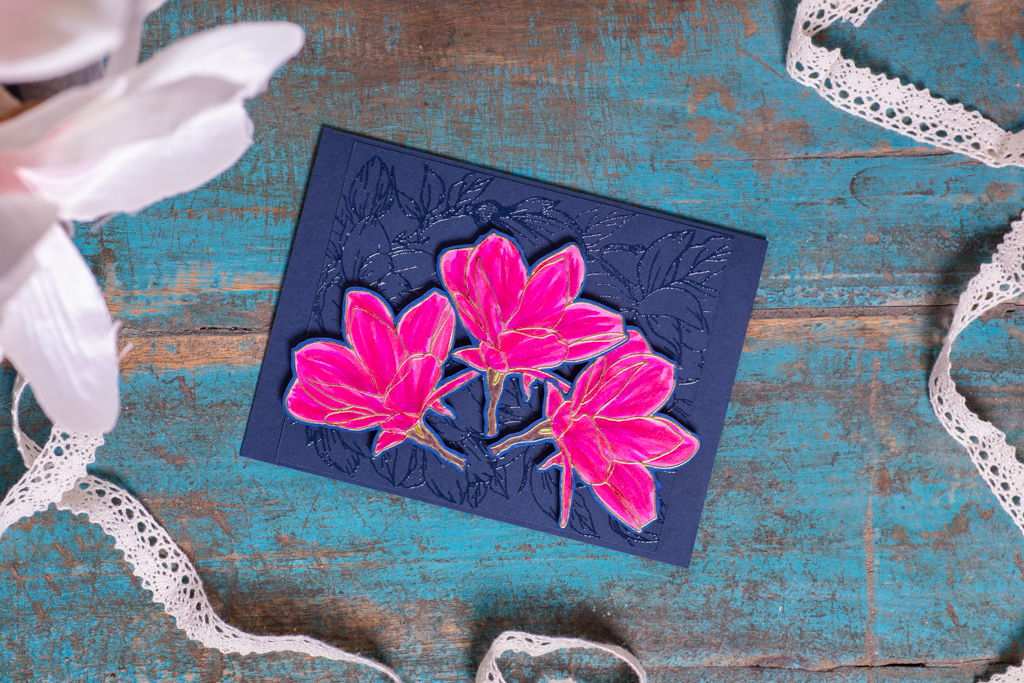 Schlagwörter: Schwarz Gold Magnolie Blume Geburtstag Muttertag Danke Embossing Blüte
