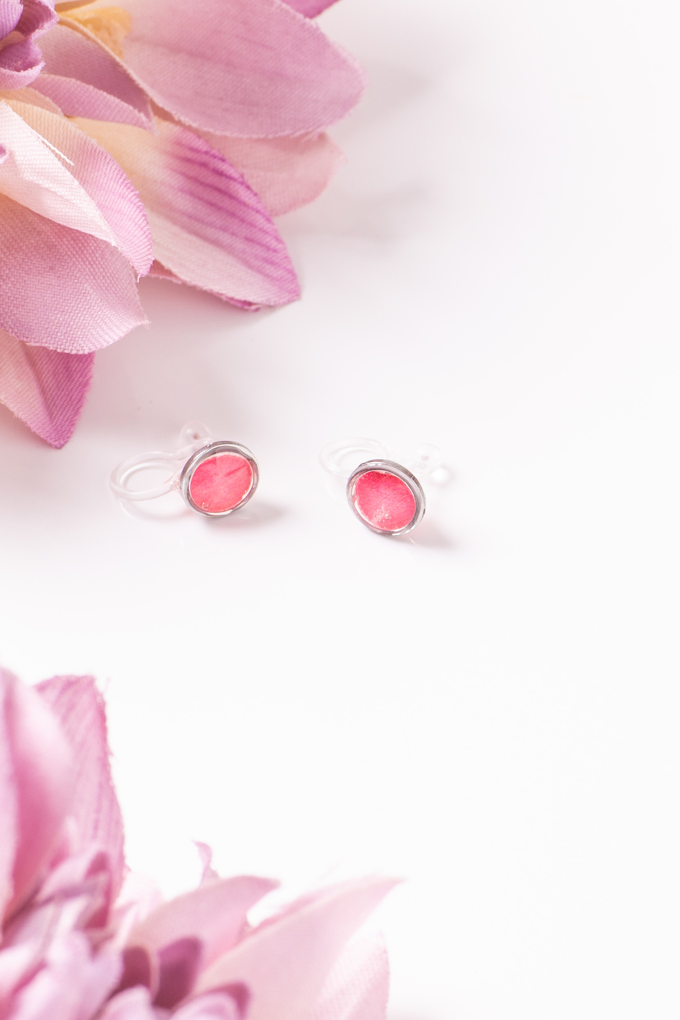 Ohrclip Resin Punkt Silber Rose Koralle 1