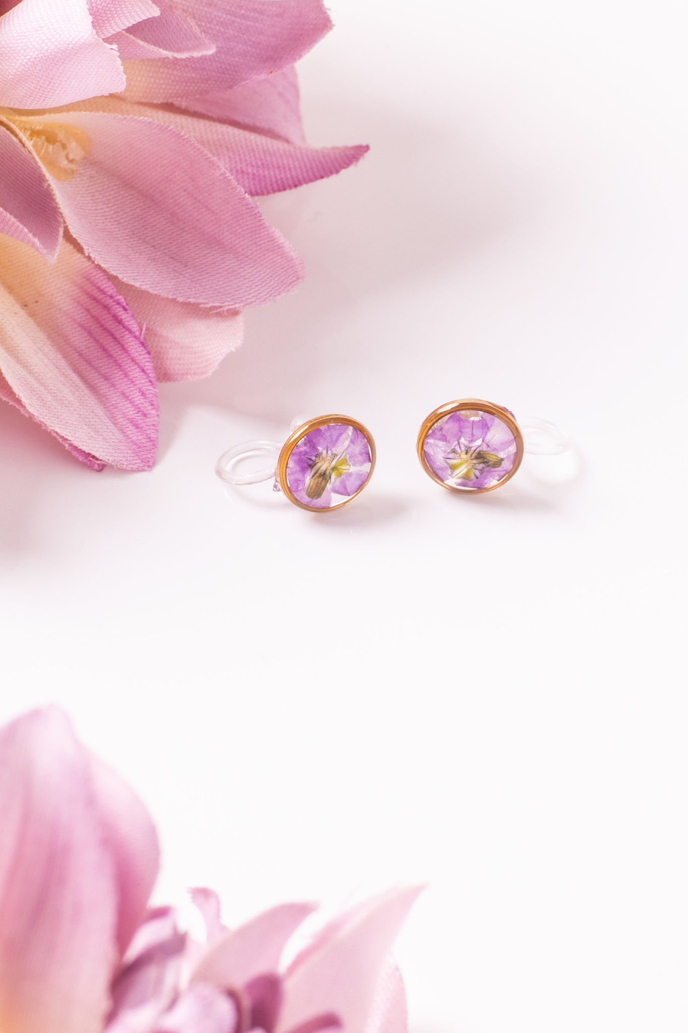 Ohrclip Resin Punkte Gold Schein Myrthe Lila 3