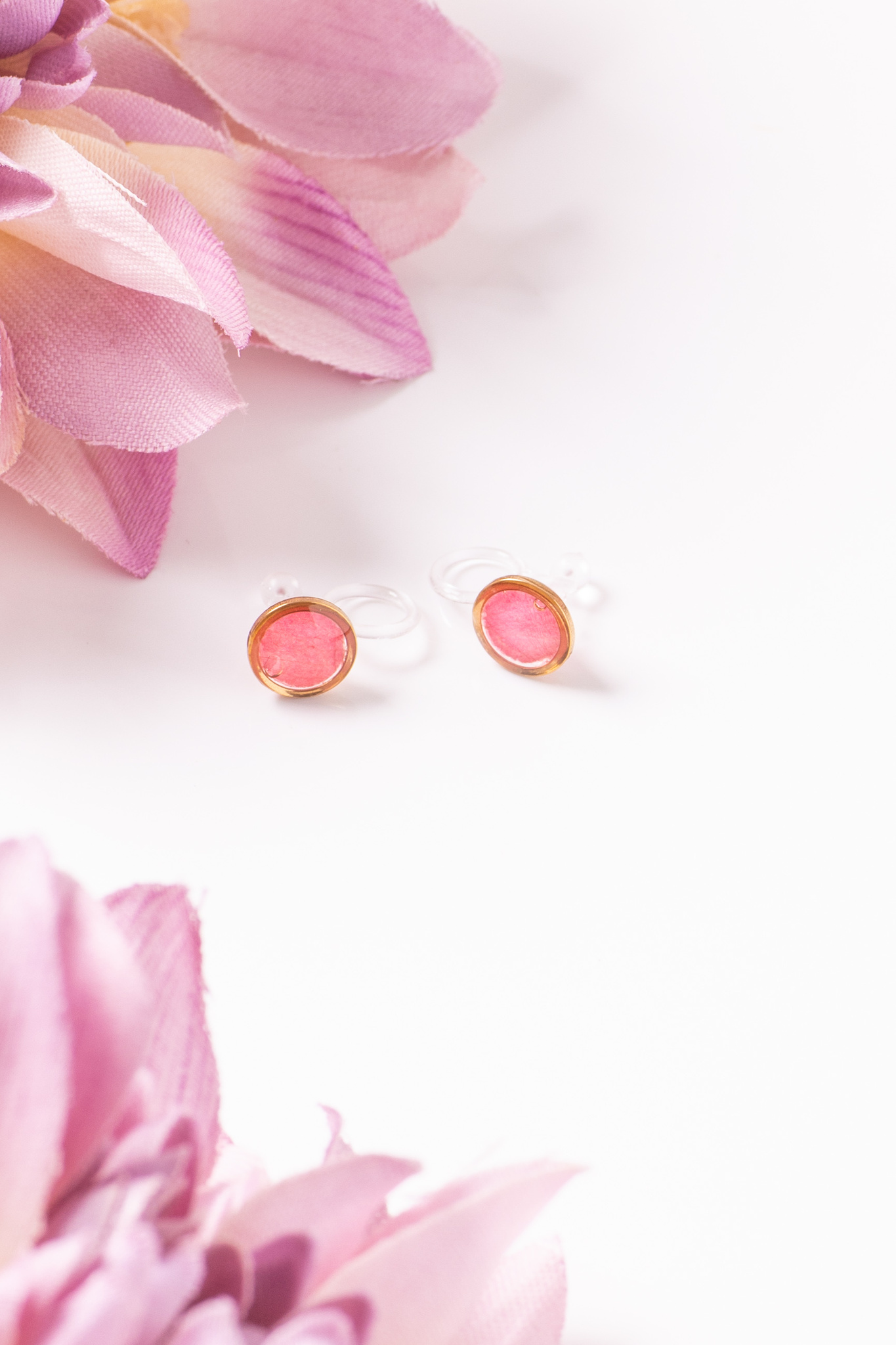 Ohrclip Resin Punkte Silber Rose Rosa Mini 2