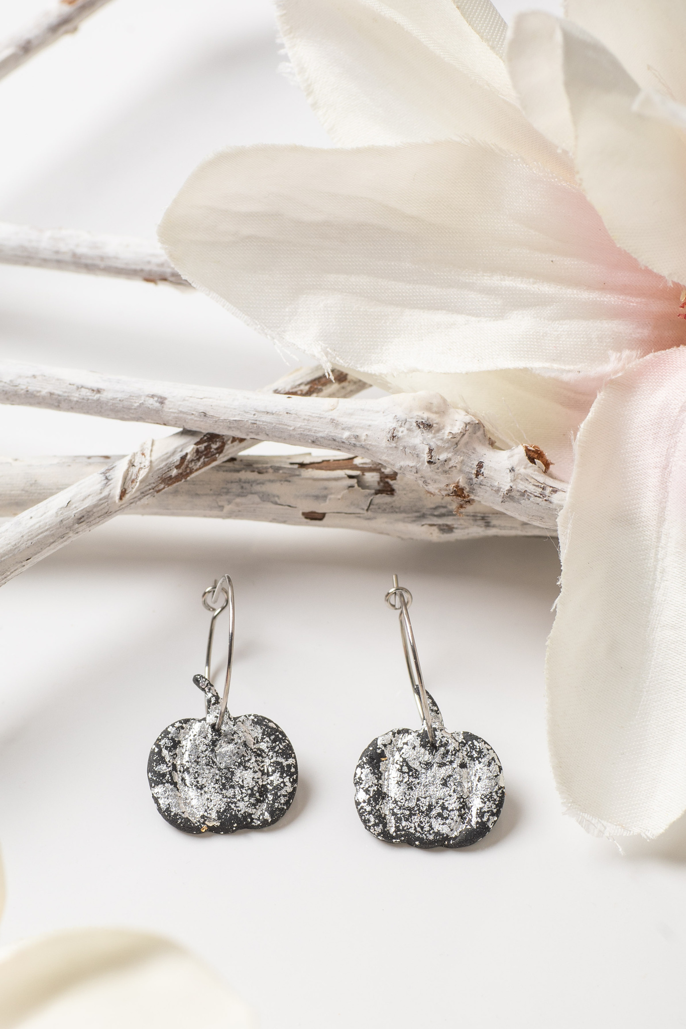 Ohrhänger Creole Kürbis Schwarz Silber