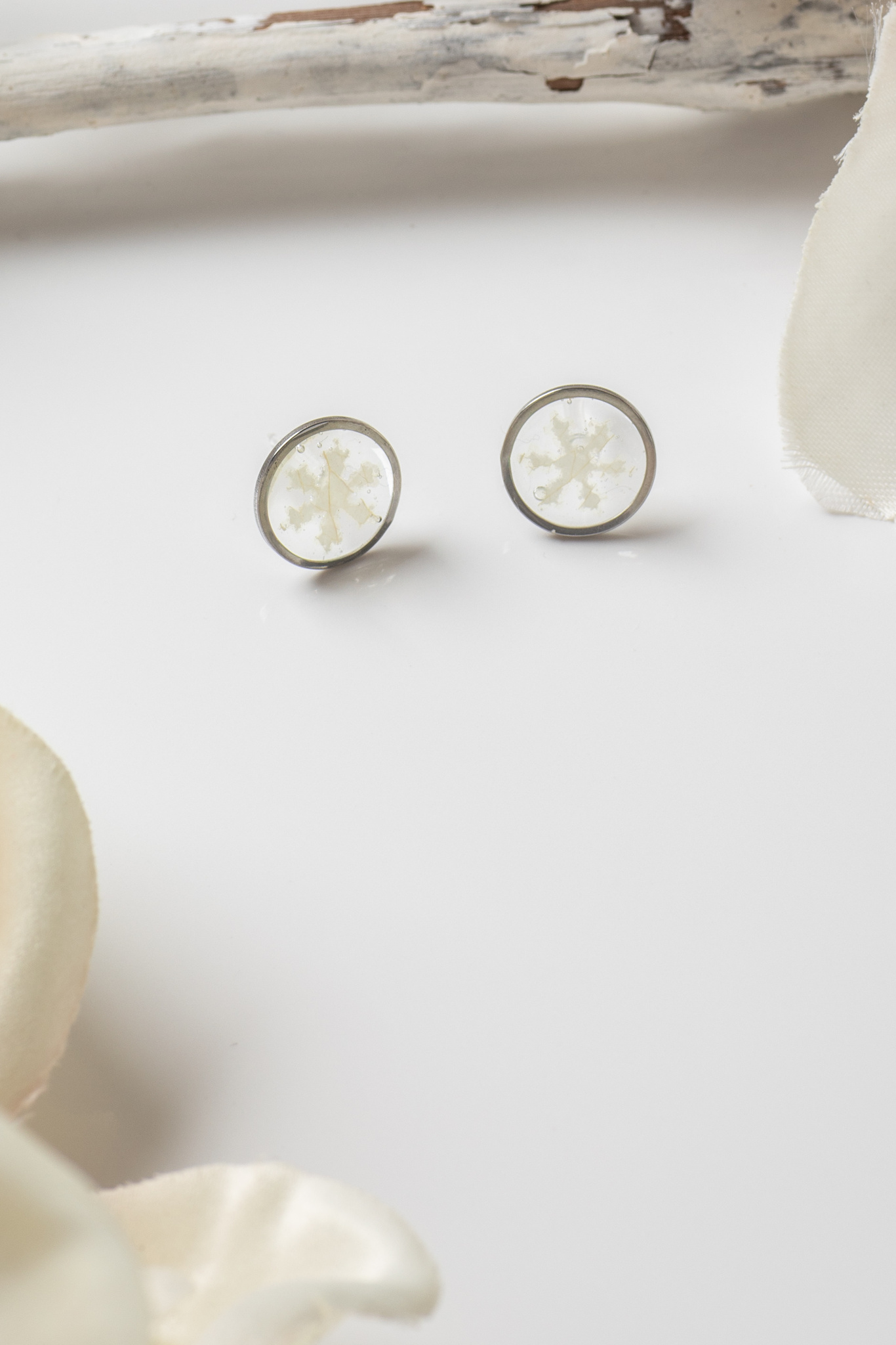 Ohrstecker Resin Knöpfe Silber Rose Weiß