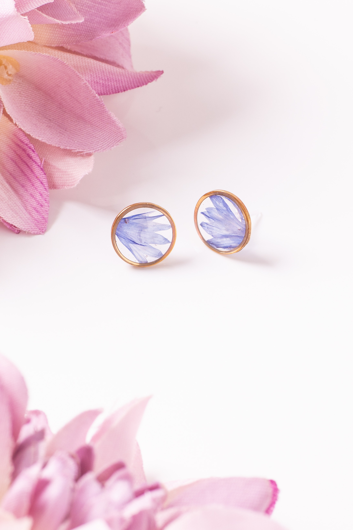 Ohrstecker Resin Punkte Gold Kornblume Midi