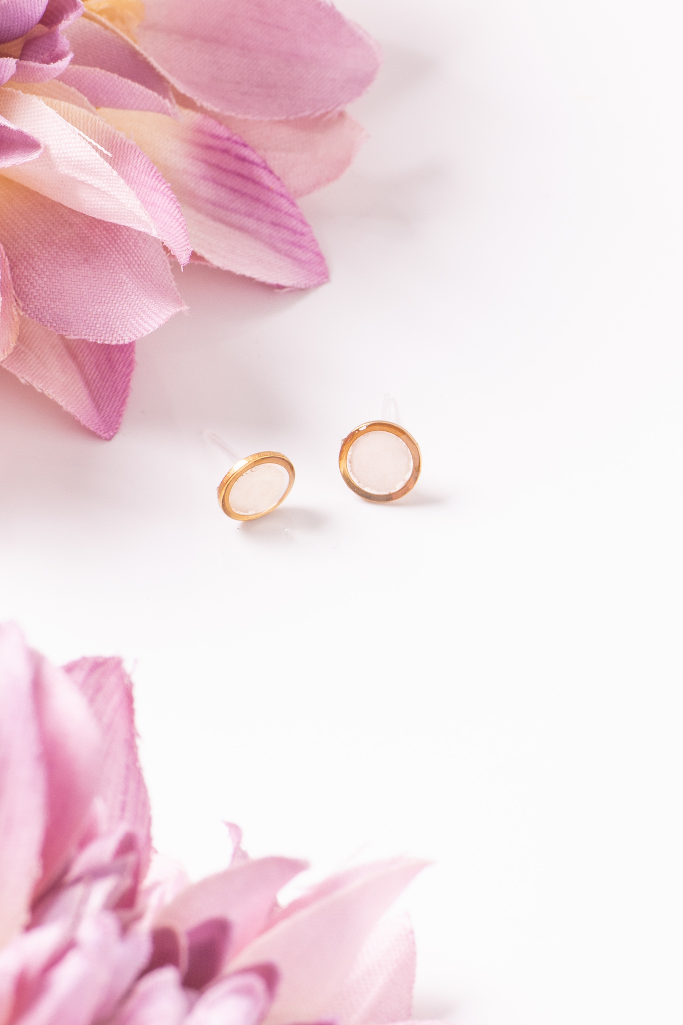 Ohrstecker Resin Punkte Gold Rose Weiß Mini