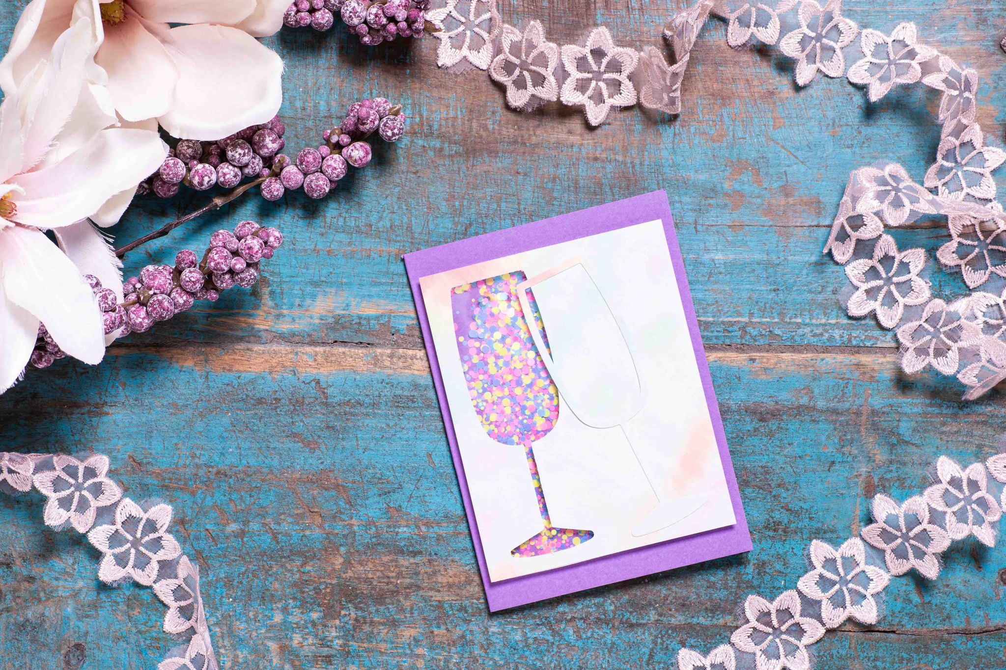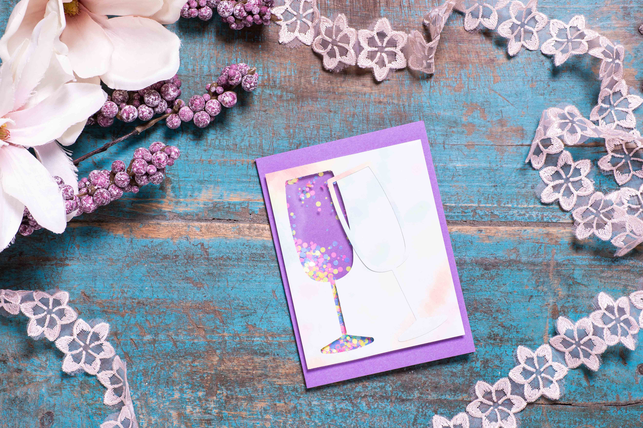 Shaker-Karte Sektgläser Lila Bunt